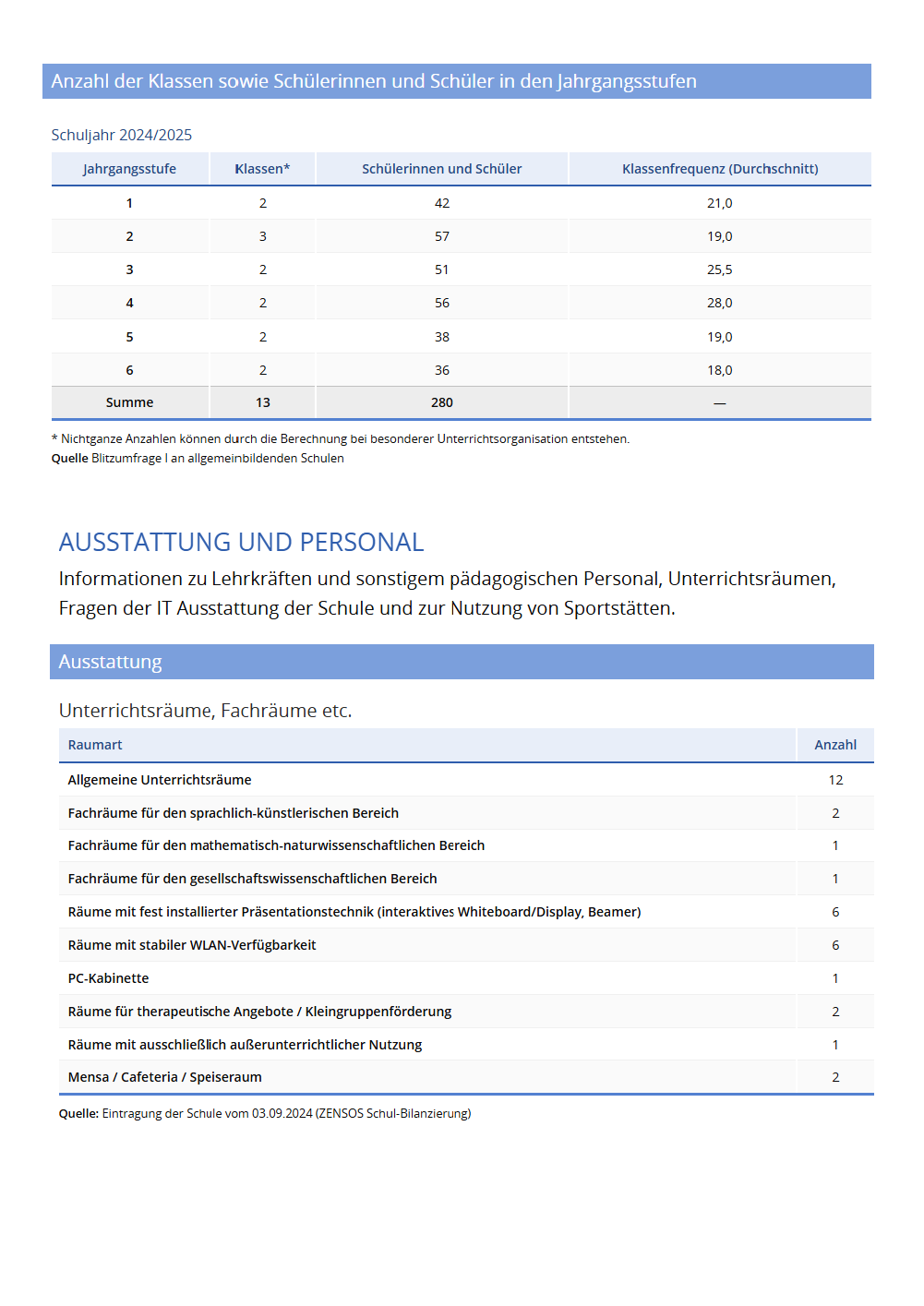 Unsere Schule verfügt über 8 allgemeine Unterrichtsräume und spezielle Fachräume für Naturwissenschaften, Musik und Kunst, sowie über ein neu eingerichtetes Computerkabinett mit 30 Arbeitsplätzen. Ebenso sind in fast jedem Klassenraum Smartbords installiert und es gibt 76 transportable Notebooks oder Tablets für die tägliche Arbeit unserer Schülerinnen und Schüler. 2 Schulhöfe, eine Sporthalle und die öffentliche Bibliothek bereichern unser schulisches Leben.
